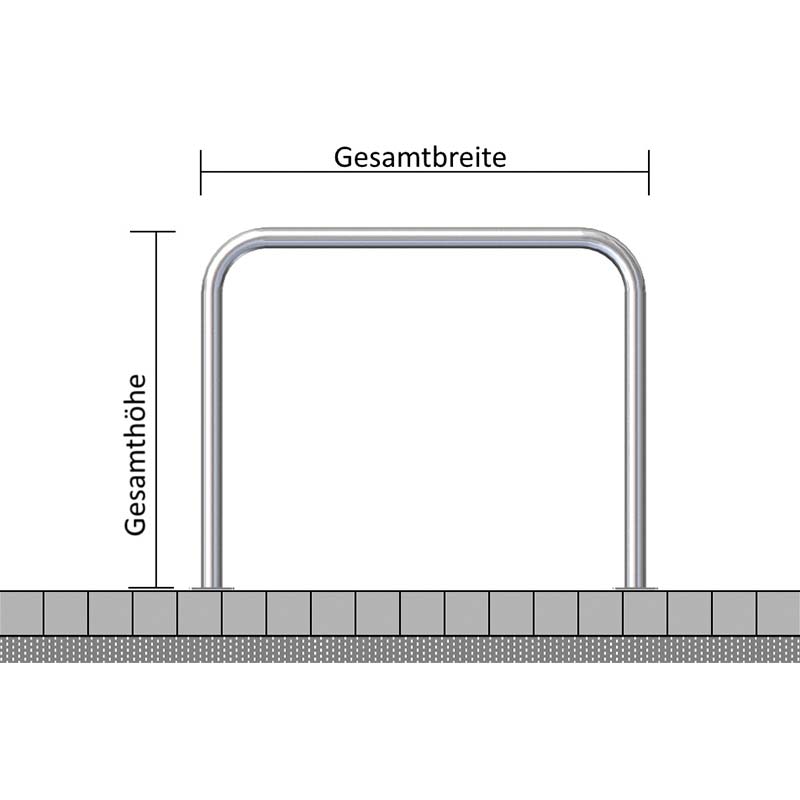 Dübeln Sie den Rohrbügel mit den Bodenplatten 100 x 150 mm inklusive 4 Löchern Ø 10 mm zur dauerhaften Montage auf einen festen Untergrund auf. Mit den angeschweißten Fußplatten erreichen Sie eine hohe Standsicherheit. Dübel bitte separat bestellen.