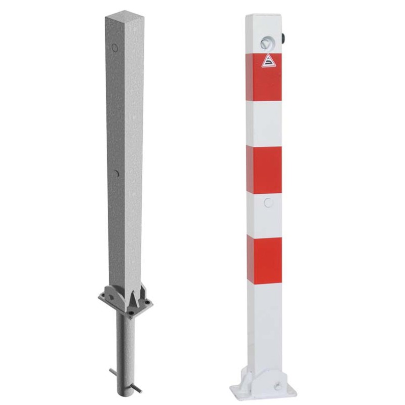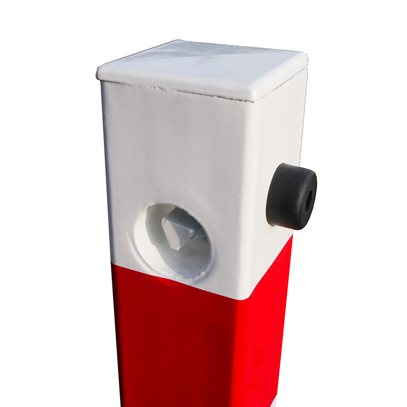 Der viereckige Sperrpfosten aus Stahl 70 x 70 mm mit oben liegendem Dreikantverschluss ist dank seiner roten Reflexstreifen auch bei schlechter Sicht und Dunkelheit gut sichtbar. Sie haben die Wahl zwischen den Reflexionsklassen RA1 und RA2.