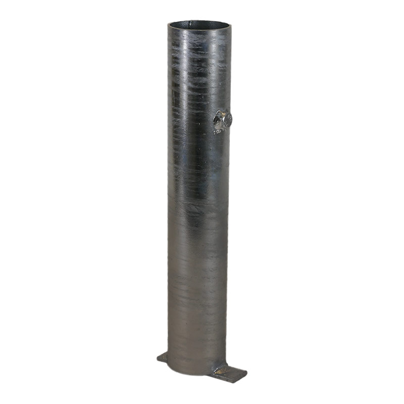 Der angeschweißte Erdanker sorgt für einen sicheren Halt im Fundament. Bei der Montage empfehlen wir eine ausreichende Drainage (Kiesfüllung) unter der Hülse anzulegen, damit stehendes Wasser ins Erdreich abfließen kann.
