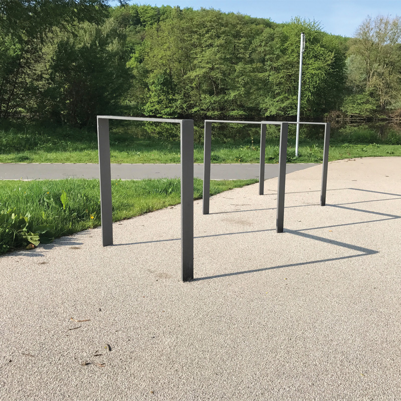 Schlicht und doch sehr funktional sind diese robusten Fahrradanlehnbügel aus Flachstahl 50 x 12 oder 80 x 12 mm von Schake. Der zweibeinige Rechteckbügel ist in drei Breiten von 450, 750 oder 1000 mm erhältlich.