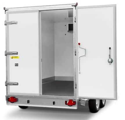 - Doppelflüglige Kühlraumtüren mit Notöffnung von innen, abschließbar