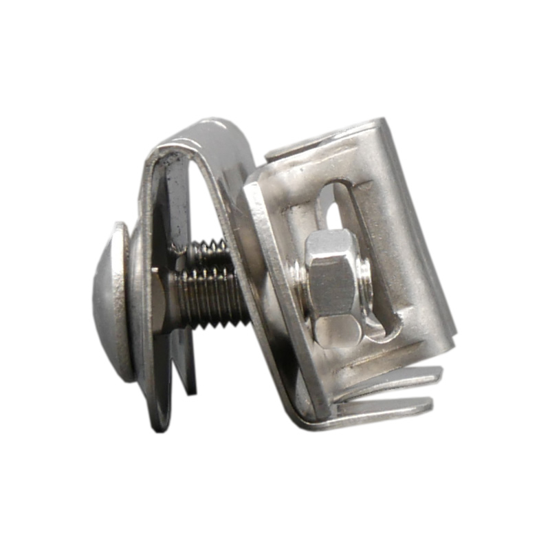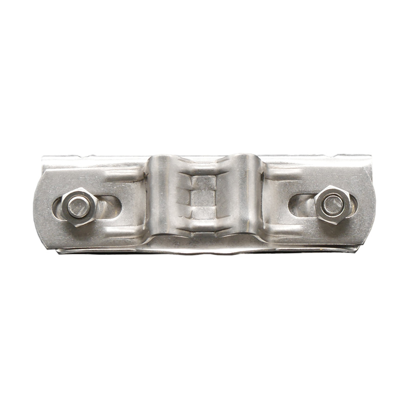 Die zweiteilige Bandschelle besteht aus rostfreiem Edelstahl. Die beiden mitgelieferten Edelstahlschrauben verbinden das Klemmstück und den Bandhalter.