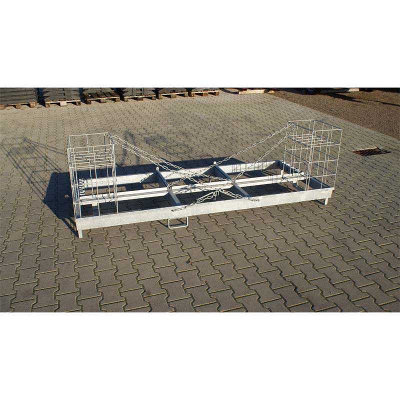 Weiterhin ist die Transportpalette mit Sicherungsketten ausgestattet, mit denen Sie die Fußplatten verzurren können.
