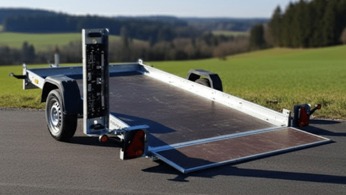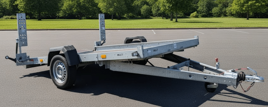 Universeller Transportanhänger mit kippbarer Deichsel für den Transport von Motorrädern, Quads und anderen Kleinfahrzeugen. Der Trailer ist wesentlich breiter als die Trailer der Moto-Serie. Untergestell aus verzinkten, gebogenen und miteinander verschraubten Stahlprofilen. Der Boden besteht aus wasserfestem, rutschfestem Sperrholz. Es ist möglich, Seitenbretter hinzuzufügen, was die Transportkapazität erhöht, und das Überbrett erleichtert den Einstieg in den Anhänger. Die Möglichkeit, einen Kurbelaufzug zu montieren, so dass der Anhänger in der gekippten Position bleibt, wenn das erste Teil geladen wird.