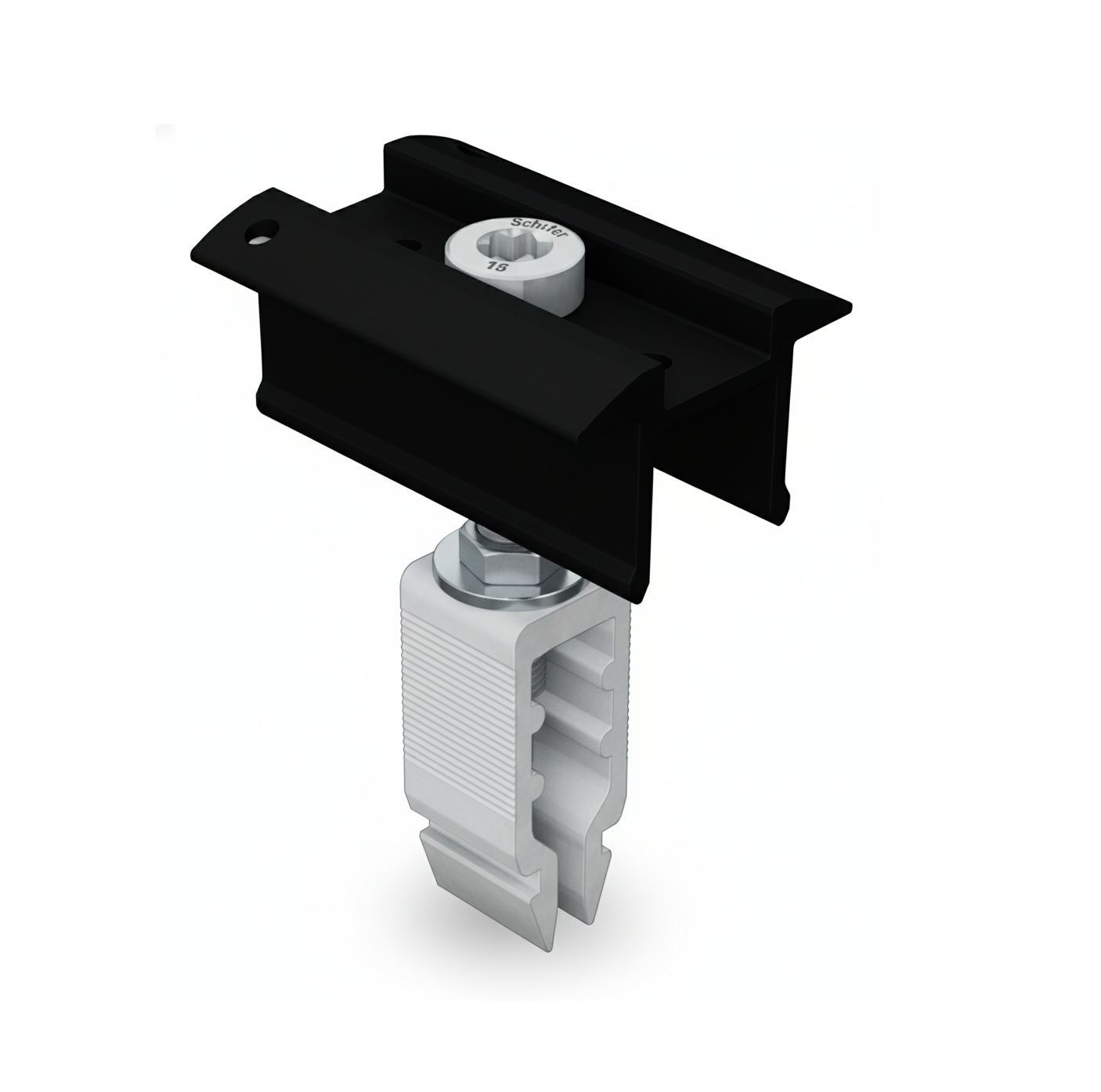 Die schwarz eloxierte Ausführung dieser Mittelklemme ist speziell für die optische Abstimmung auf schwarze Modulrahmen entwickelt worden. Full-Black-Module und schwarze Rahmen liegen im Trend, da sie ein besonders ästhetisches und einheitliches Erscheinungsbild erzeugen. Mit der schwarz eloxierten RapidPro-Klemme fügt sich auch die Montagetechnik nahtlos in dieses Design ein – für Photovoltaikanlagen, die nicht nur leistungsstark, sondern auch optisch ansprechend sind.