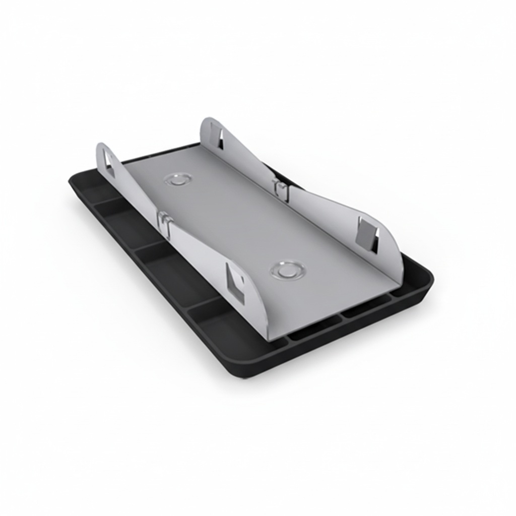 Der SL Rack Bodenschuh ist ein Element des Fast Flat Basic Frame Systems von SL Rack, speziell entwickelt für die Montage auf Flachdächern mit druckempfindlicher Dämmung oder sensibler Dachhaut. Der Bodenschuh aus UV-beständigem PVC wird direkt unter den Systemrahmen (Basic Frame) eingeklickt und dient der gleichmäßigen Verteilung der Systemlast auf eine größere Fläche – ohne Werkzeug, ohne Schrauben, ohne Aufwand.