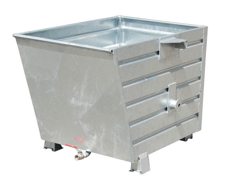 Für Unternehmen, die Späne sammeln und entsorgen müssen, ist dieser Kipper eine ideale Lösung. Er ist mit einem 1-Zoll-Ablasshahn und einem Lochblech-Zwischenboden an der Schüttwand ausgestattet, was die Sammlung und Entsorgung von Spänen äußerst effizient gestaltet.