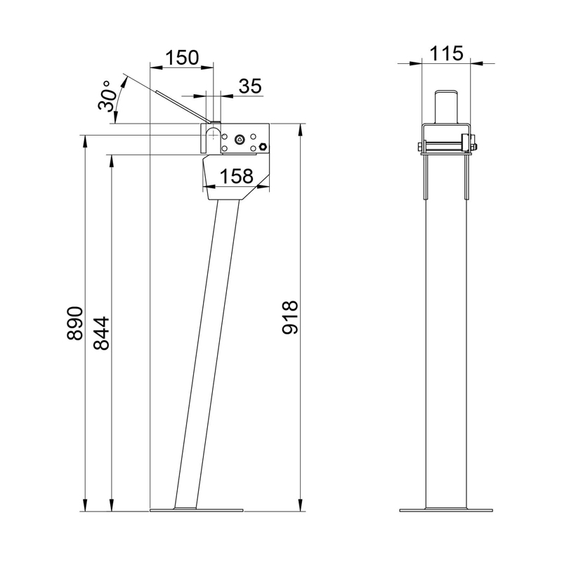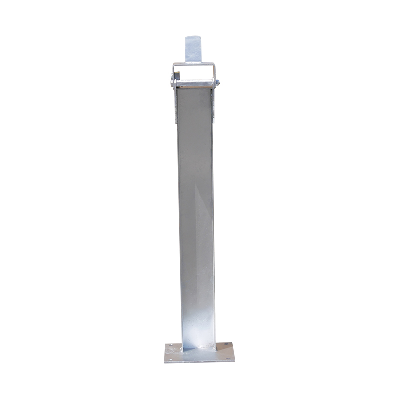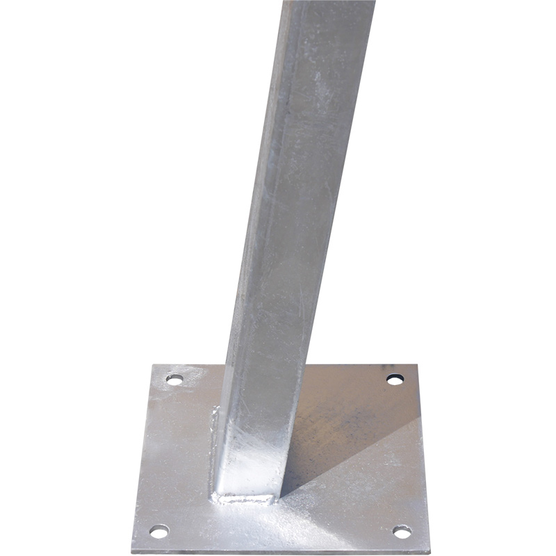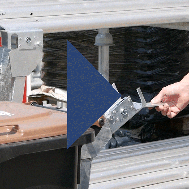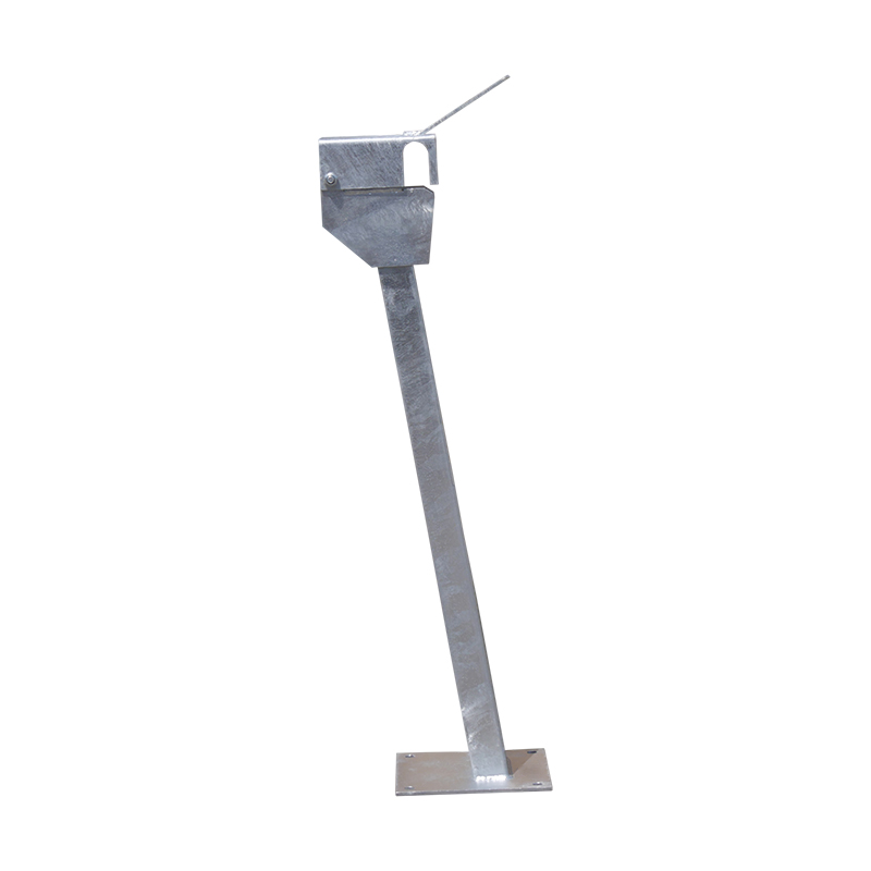 Die Standplatzsicherung für Müllbehälter mit 120 Litern Volumen verfügt über eine Bodenplatte zum Aufdübeln. Zum Entnehmen der Mülltonnen aus der Halterung ist ein Dreikantverschluss M5 als Schließsystem oben im Pfostengehäuse integriert.