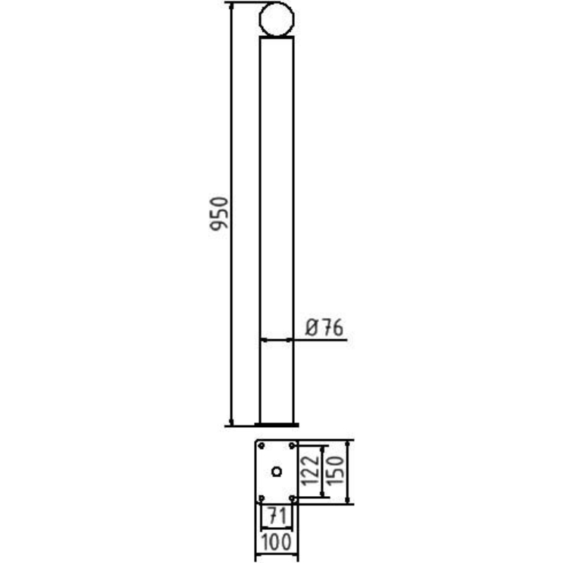 - Material: Stahlrundrohr Ø 76 mm