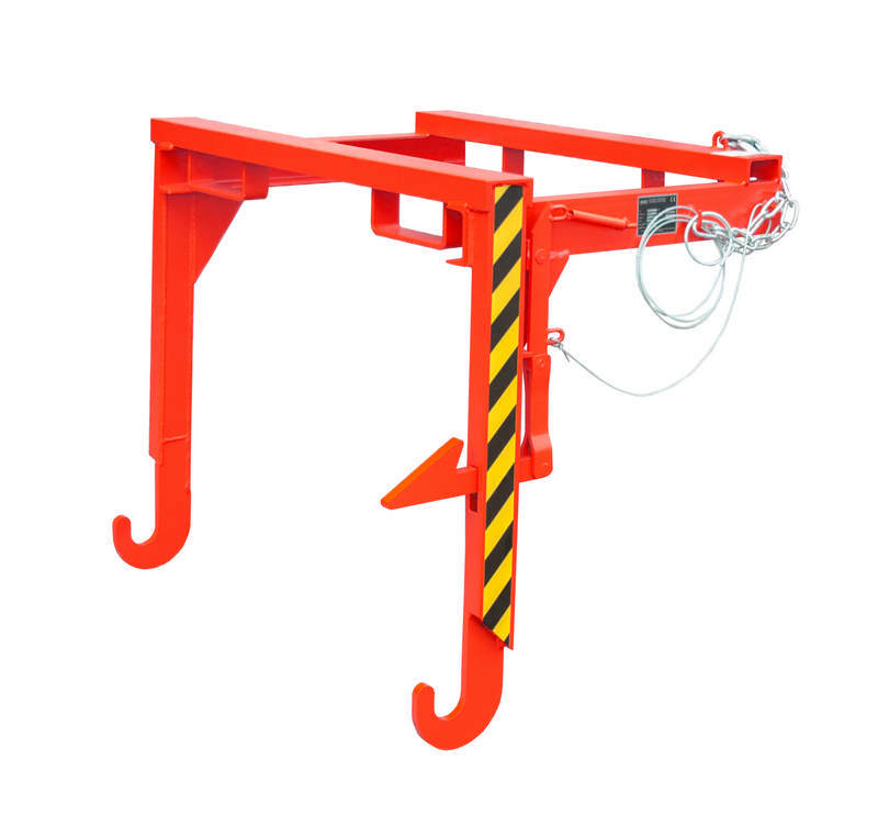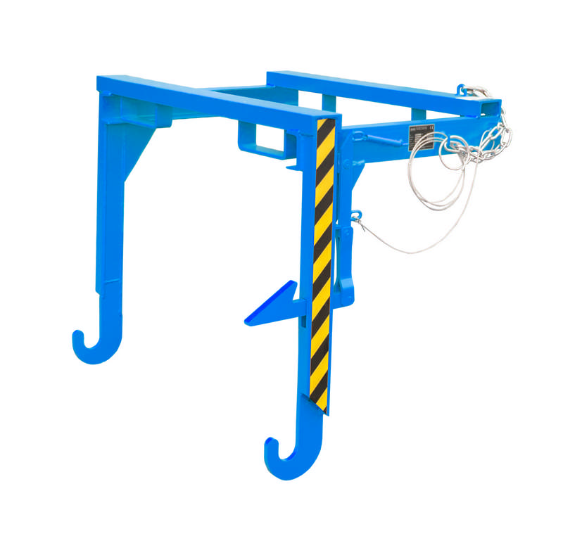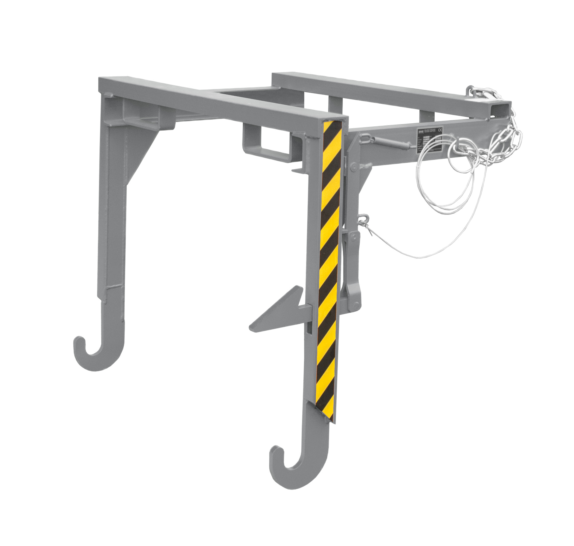 Traversen zum Entleeren der Späne-/ Stapelkipper —- Kippen in jeder Höhe per Seilzug vom Staplersitz — Sicherung gegen unbeabsichtigtes Abrutschen und Abkippen — Aufnahme des Stapelkippers an den Aufnahmezapfen — Einfahrbügel für Gabelstapler