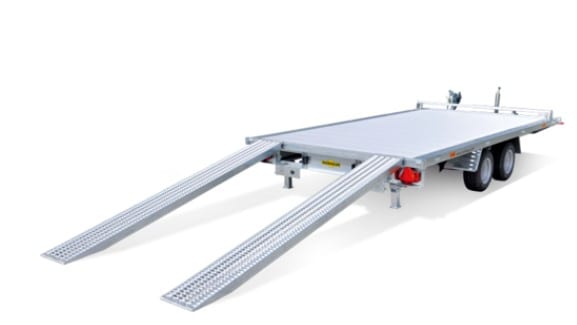 - 2 Tauchbad-feuerverzinkte Auffahrbohlen aus Gitterrost unter der Ladefläche eingeschoben