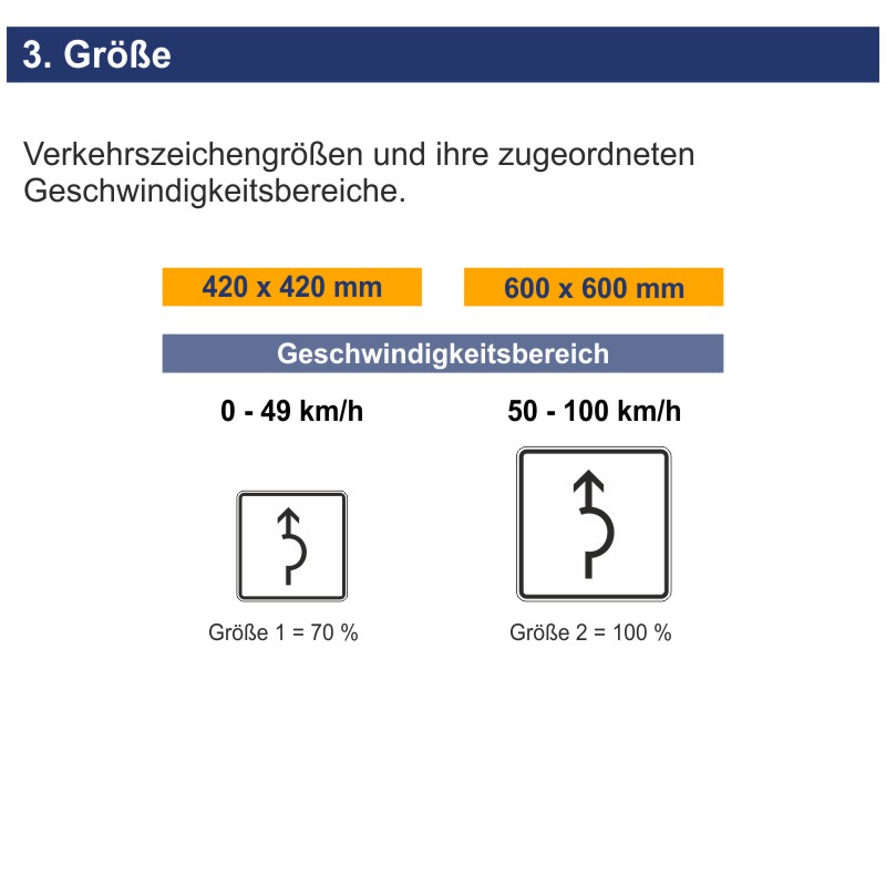 Einsatz: Das Zeichen 1000-34 wird unmittelbar unterhalb des Verkehrszeichens, auf das es sich bezieht, montiert.